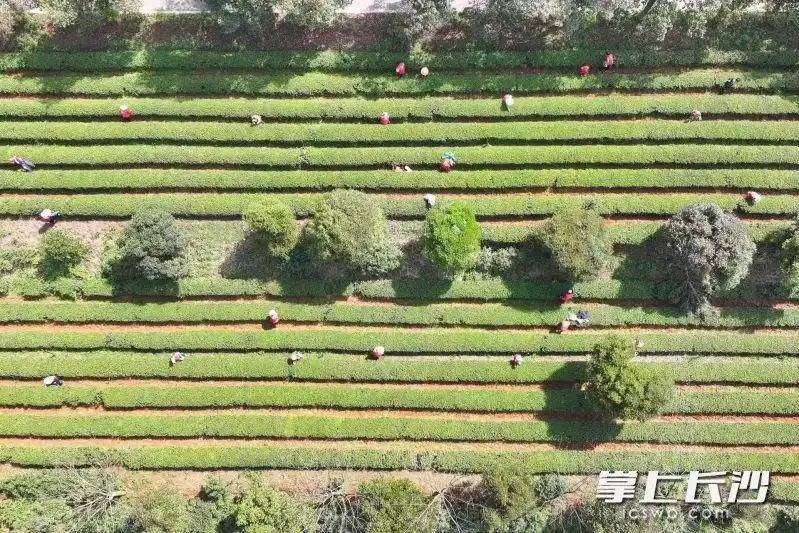 层层叠叠的茶树依着山势铺展,枝头上,一颗颗肥嫩的茶芽顶着细绒,裹着晶莹的晨露,嫩黄翠绿,格外惹人喜爱。走进乌山贡茶有机茶园,一股茶香随风飘散,沁人心脾。茶园内,一个个穿着红马甲的采茶工挎着竹编茶篓,俯身于翠绿的茶行间,她们指尖轻巧灵动,精准捏住枝头的一芽一叶,轻轻一捻,鲜嫩的茶芽便落入掌心,随即轻巧地放进腰间的茶篓。“我们早上8点就入园采摘了,眼下采的明前茶,是一年中品质、价值俱佳的好茶,芽头细嫩,口感鲜爽醇厚。”湖南望城乌山贡茶业有限公司技术总监秦易轩介绍,乌山贡茶春茶以绿茶为主,往年3月中下旬便可开采,今年因连续阴雨天气,采摘期顺延至今日。“今天茶园有300余名采茶工同步作业,大多是本地村民,更有数十名经验老到的郴州采茶工助力,熟练工平均每人每日能采5斤鲜叶。”